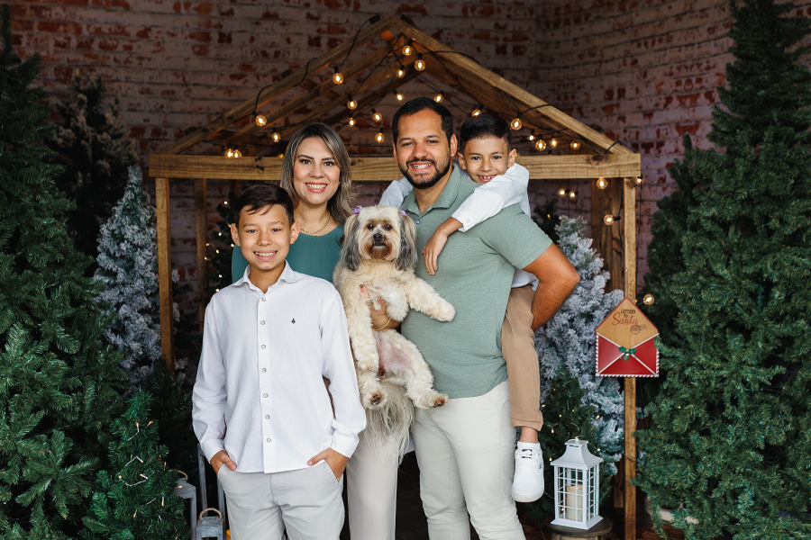 A Larissa e o Guilherme entraram no clima, vivendo cada momento ao lado dos meninos. E a Sofie, claro, fez parte de tudo. Aqui, pets não são apenas permitidos: eles são parte essencial da história da família. Estão nas fotos, nos vínculos, no que faz sentido para vocês agora.