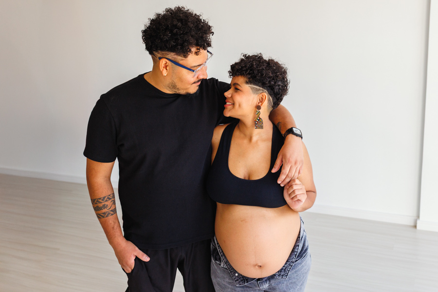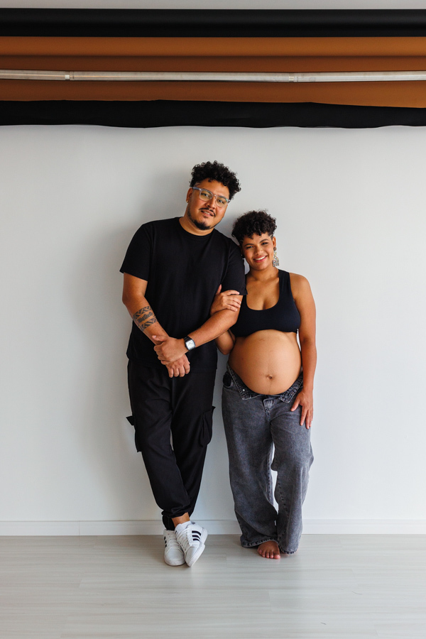 Entre movimentos, risadas, abraços e momentos mais tranquilos, o ensaio foi acontecendo de forma leve, sem poses engessadas. A ideia era criar imagens que realmente tivessem a ver com eles e com a espera pelo Benício.